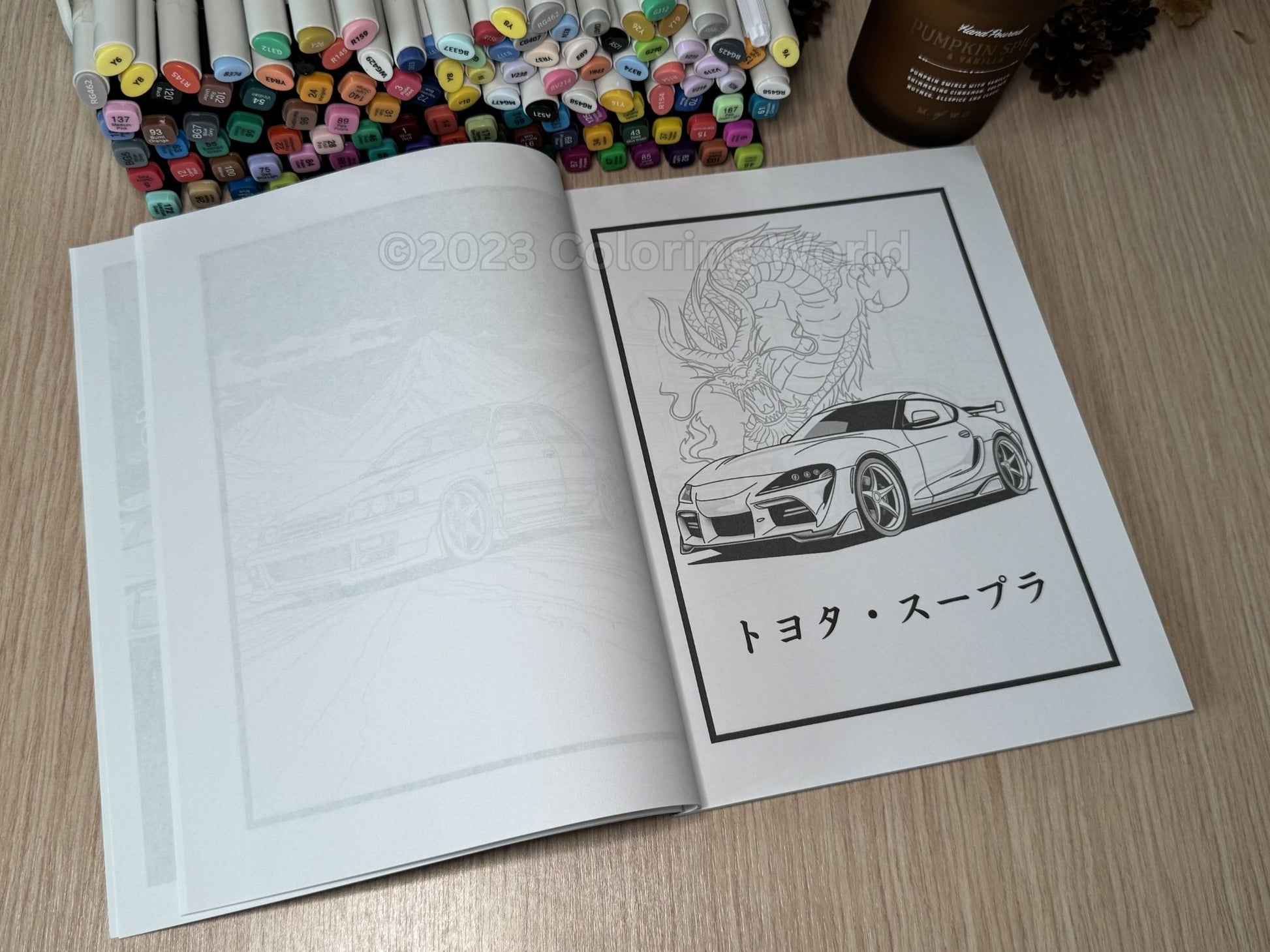 🏞️ Japanese Inspired Backgrounds: The coloring pages are not just limited to the cars themselves; they feature unique and captivating backgrounds inspired by the beauty of Japan, transporting you to the heart of this incredible culture with the unique and authentic landscapes.
