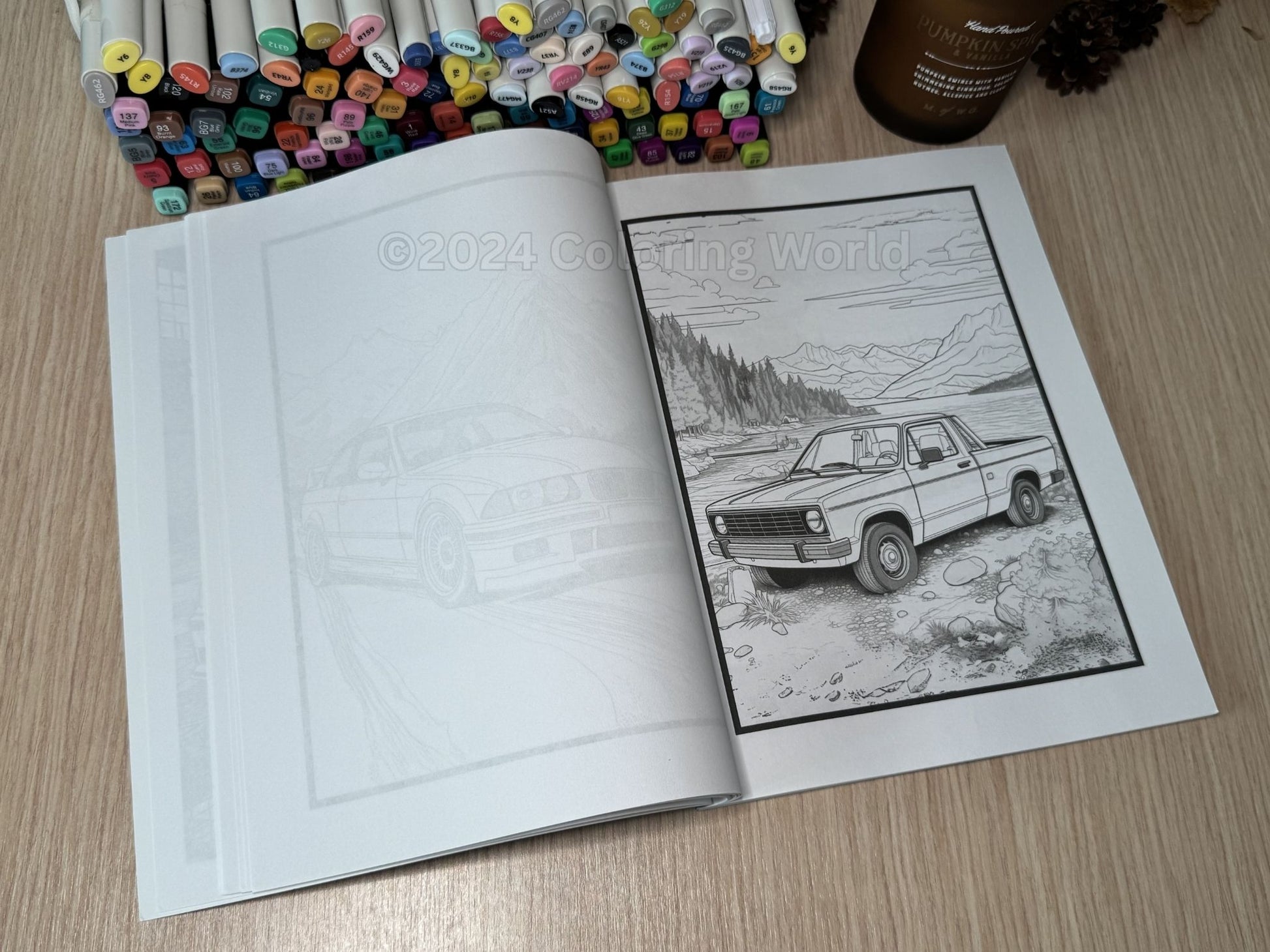 🏞️ Relevant Backgrounds: The coloring pages are not just limited to the cars themselves; they feature unique and captivating environments to suit the vehicle.